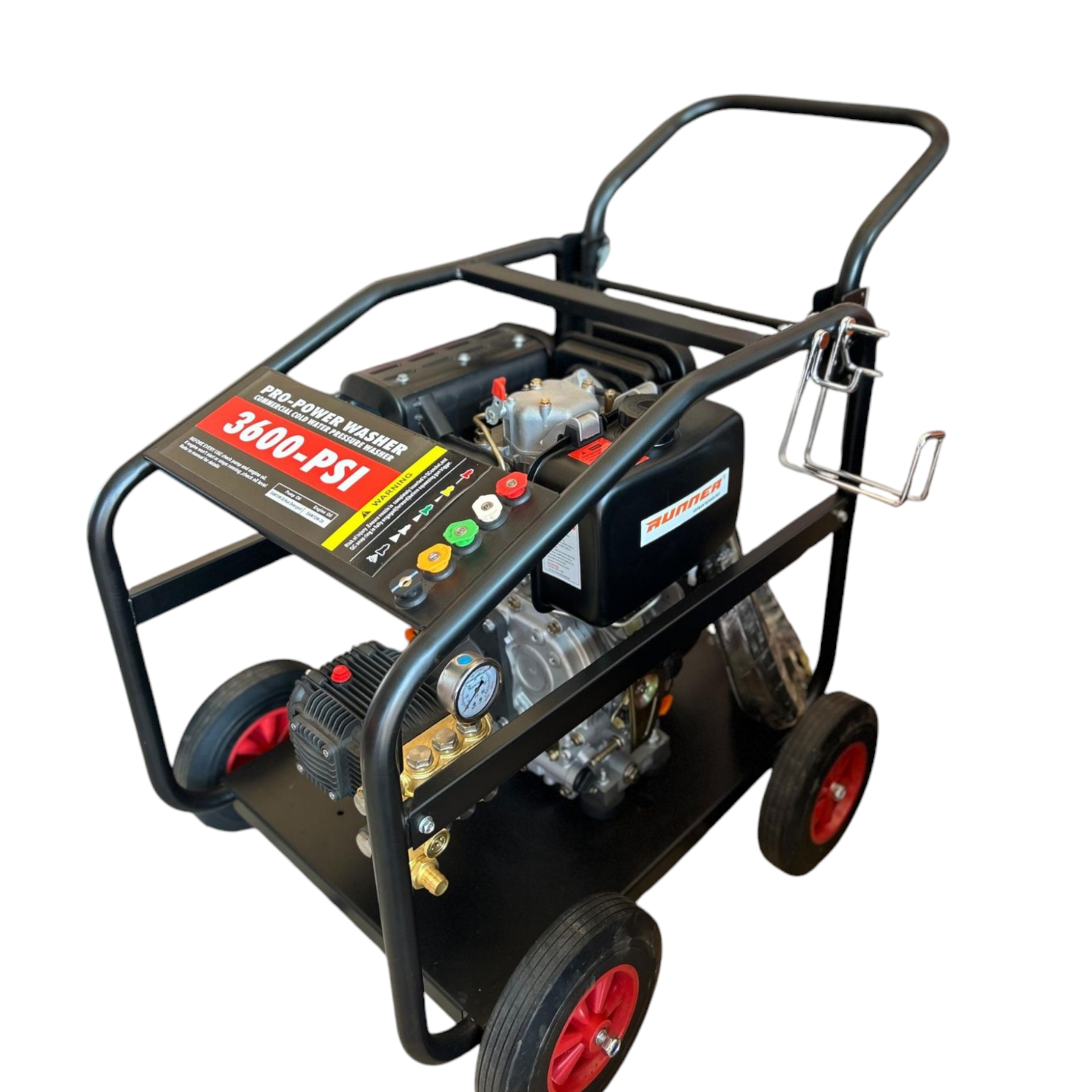 Runner High Pressure Car Washer brand pro-power washer with 3600 PSI. Key features include:
